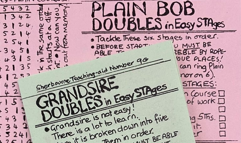 Bellringing music is unique; it isn't written on a standard score but is performed entirely from memory, learned by following the order in which each bell sounds. Bells start by ringing down the scale, creating the familiar sound we all recognize. This sequence is written as 1 2 3 4 5 6 if there are six bells. However, to ring changes, bells swap their positions in the order each time they strike.